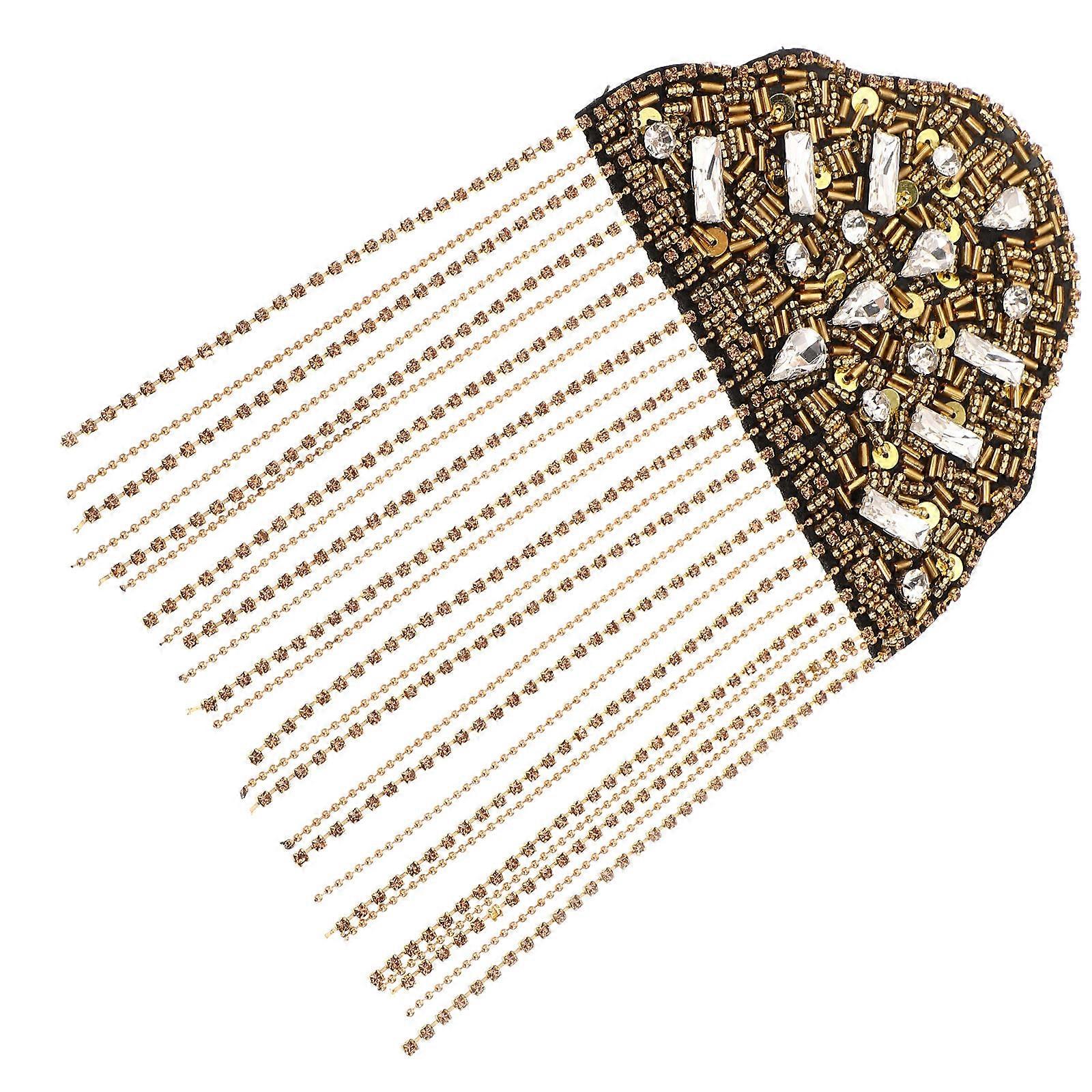 Gold Rhinestone Tassel Shoulder Chain Epaulet Durable Decorative Fringe Trim for Clothing Bags Stage Performance Accessory for Men Women
