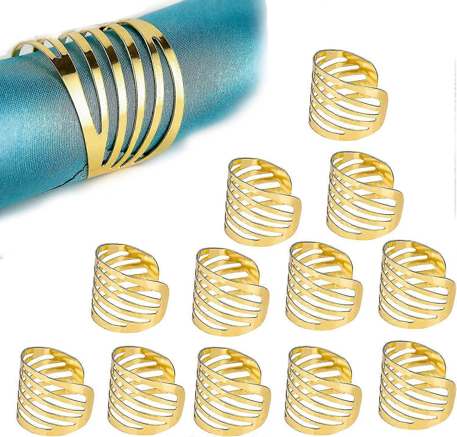 Gold Napkin Rings Handcraft Dinner Table Napkin Holders Metal Napkin Rings Holders Wedding Party Candlelit Banquet Festival Decoration 12 Piece