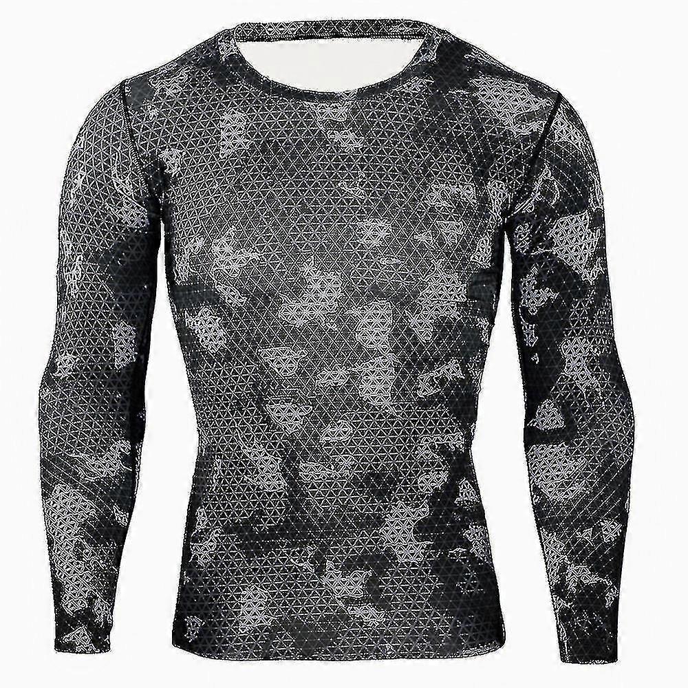 Men Running Gym Print T-shirt Round Neck Long Sleeve