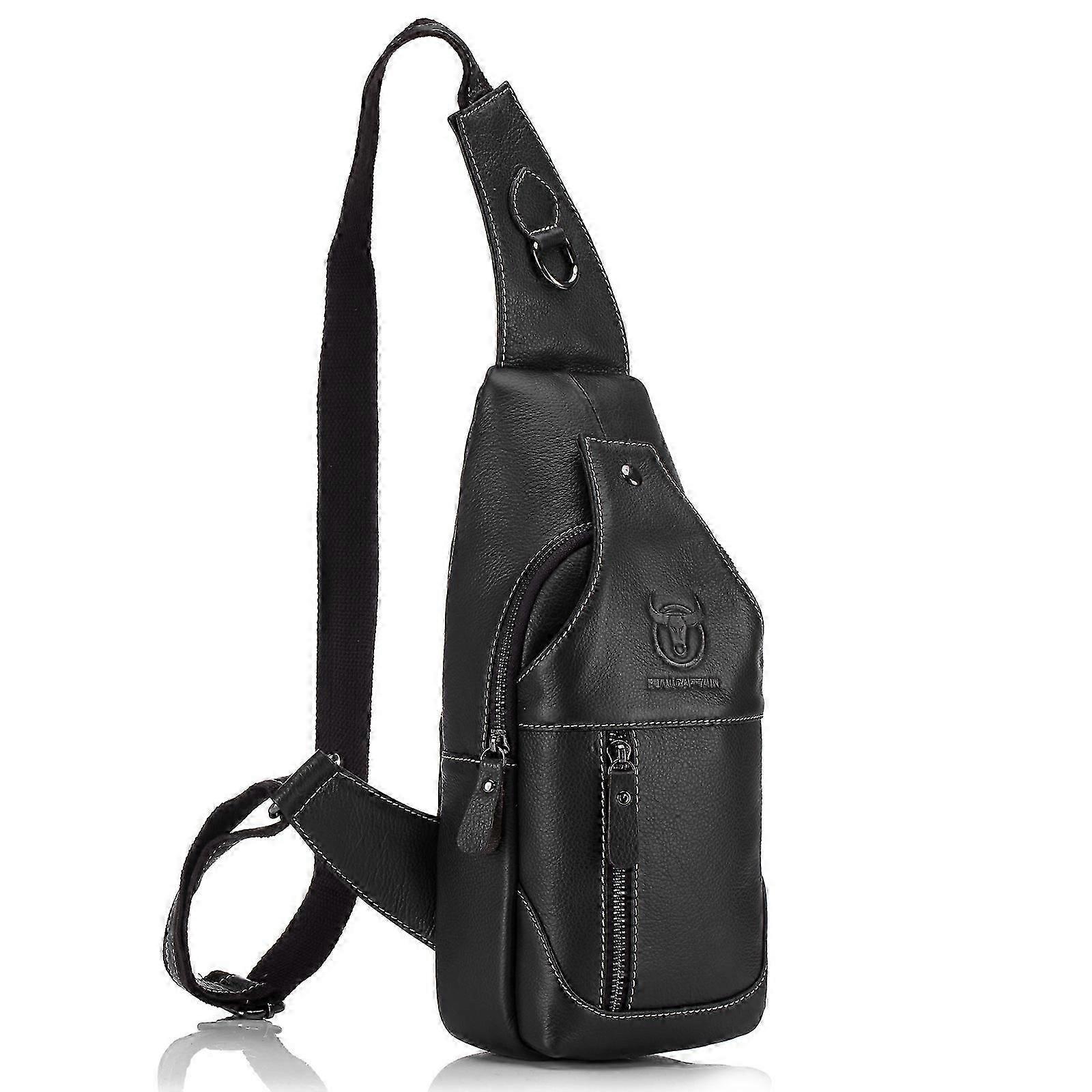 Men Leather Sling Bag Casual Shoulder Chest Crossbody Bag Hiking Travel Daypack