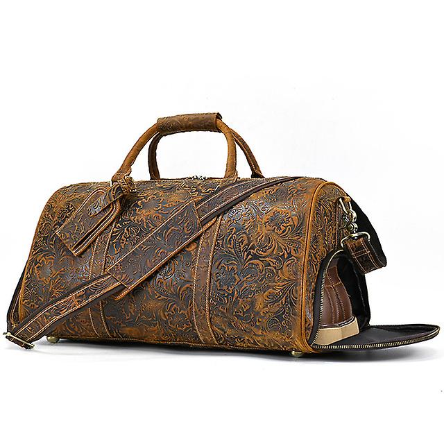 Men Retro Genuine Leather Duffle Bag With Shoes Pocket Full Grain Vintage Crazy Horse Leather Travel Bag 20inch Weekender Duffel