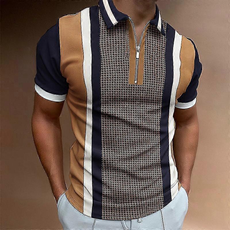 Men Zip Up Athletic T-Shirt Classic Fit Golf Summer Tops Short Sleeve Beach Polo Shirt Blouse