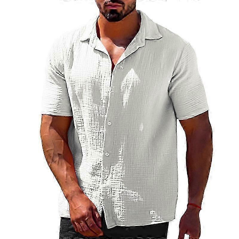 "Men's Summer Large Size Button Up Cotton Linen Shirt Man Lapel Solid Color Short Sleeve Tops"