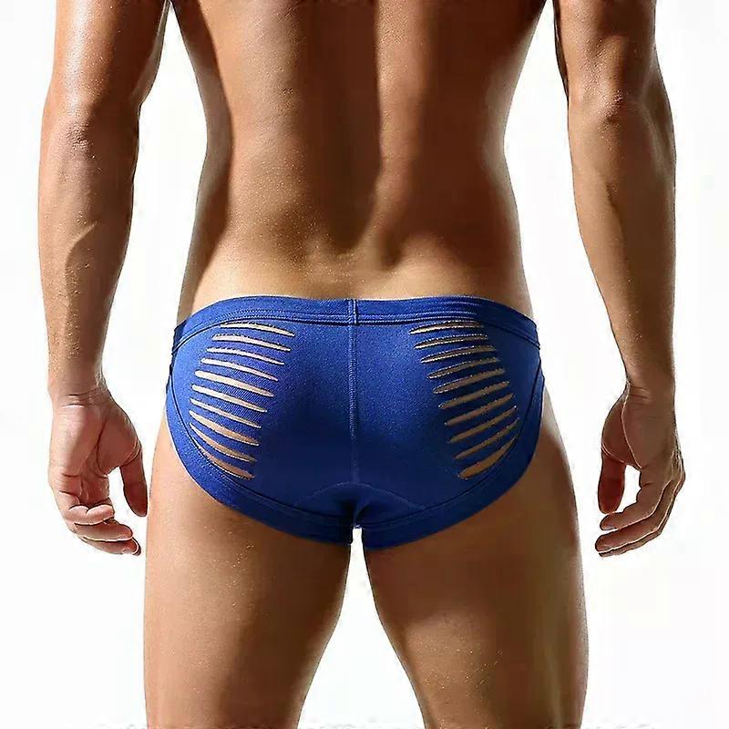 Men's Erotic Brief Underwear Striped Hollowed Out Tanga Adult Low Waist U Convex Pouch Mankini Gay Sexy Open Buttocks Underpants