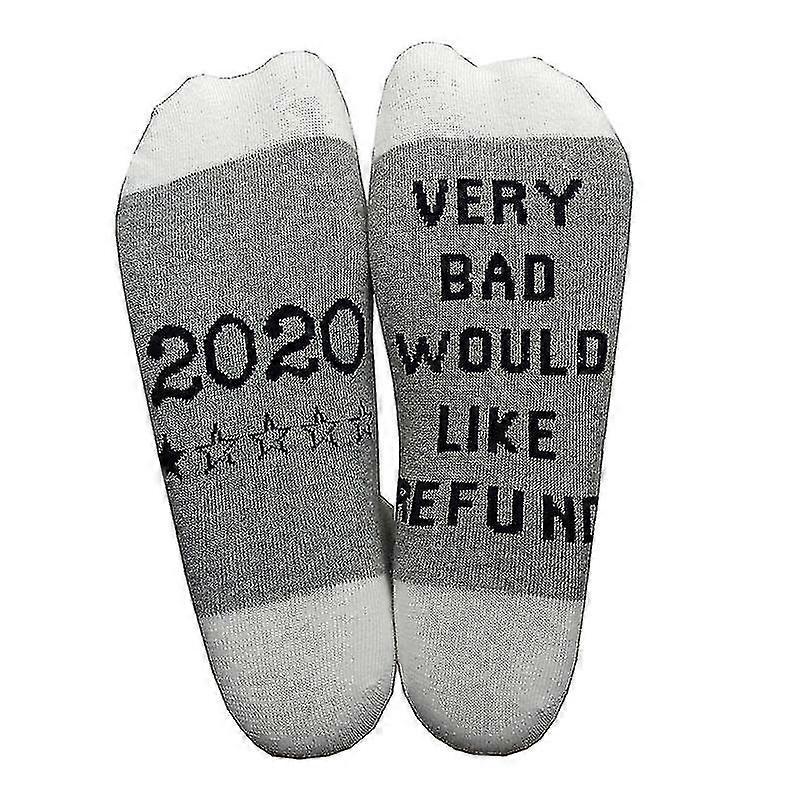 Men Women Contrast Color Cotton Crew Socks Funny Saying 2022 Very Bad Would Like Refund Letters Printed Novelty Hosiery