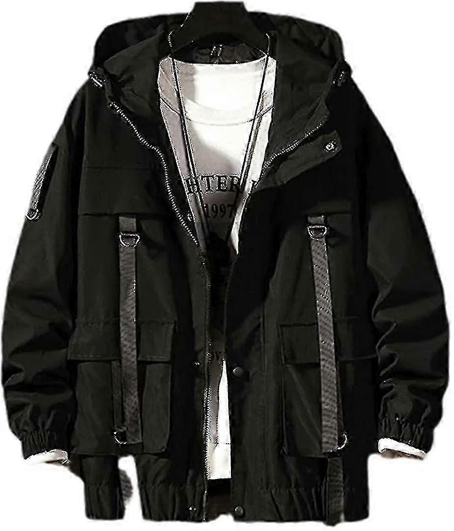 Men Jackets Ribbons Streetwear Casual Outwear Coats Hip Hop Windbreaker Overcoat SX