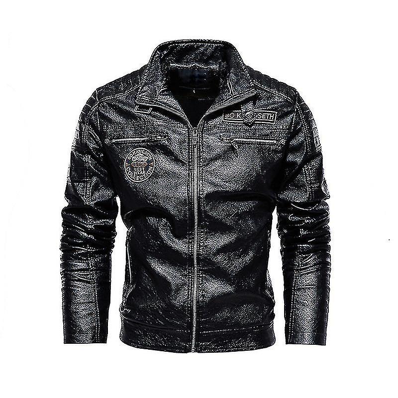 Men's Motorcycle Leather Jacket Stand Collar Zipper Fleece