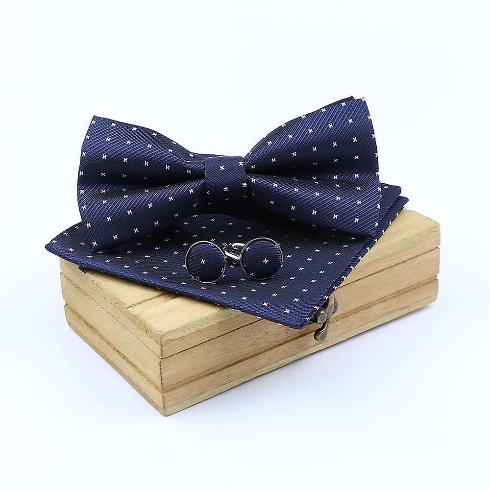 Men Bowtie Cravat Cufflinks 3pcs Set Fashion Butterfly Wedding Party Bow Ties Solid Color Dots Bowknot Handkerchief No Box