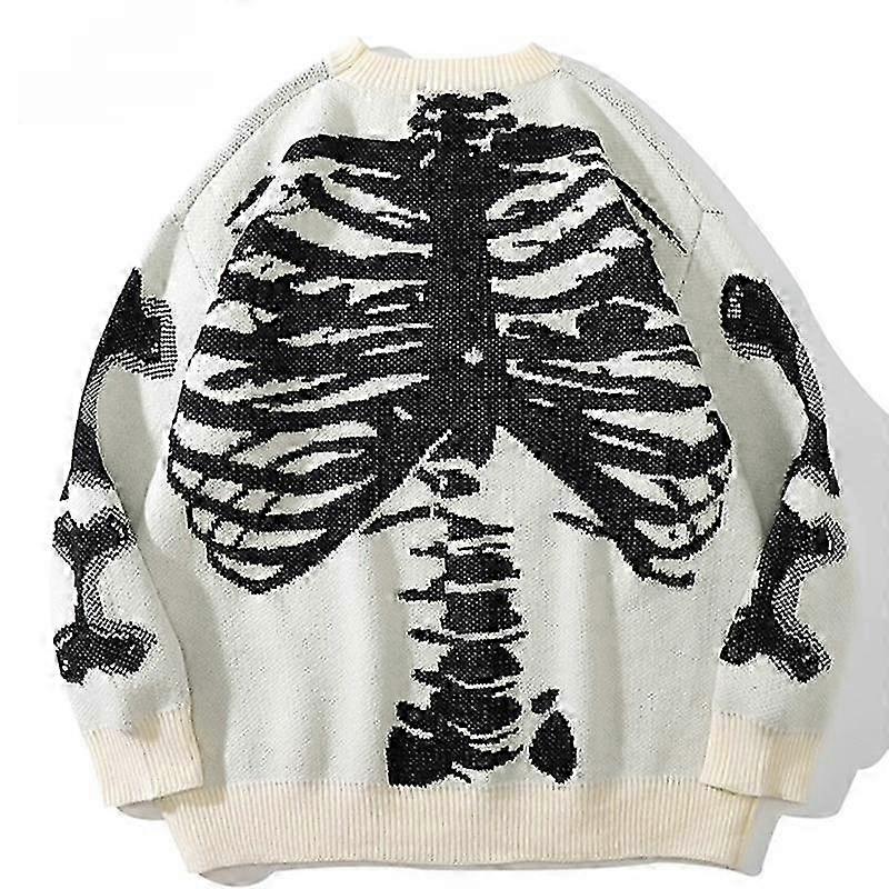 Men Oversized Sweater Black Loose Skeleton Bone Print Women Vintage Retro Knitted Sweater Autumn Cotton Pullover Unisex