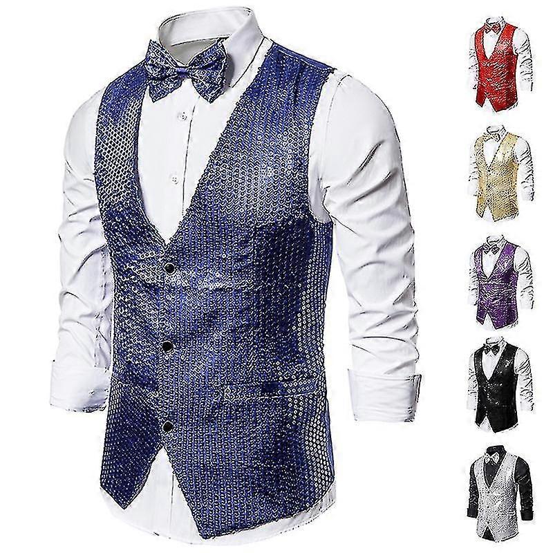 Men's Slim Fit Sequins Vest, V-neck Shiny Party Dress Vest Waistcoat