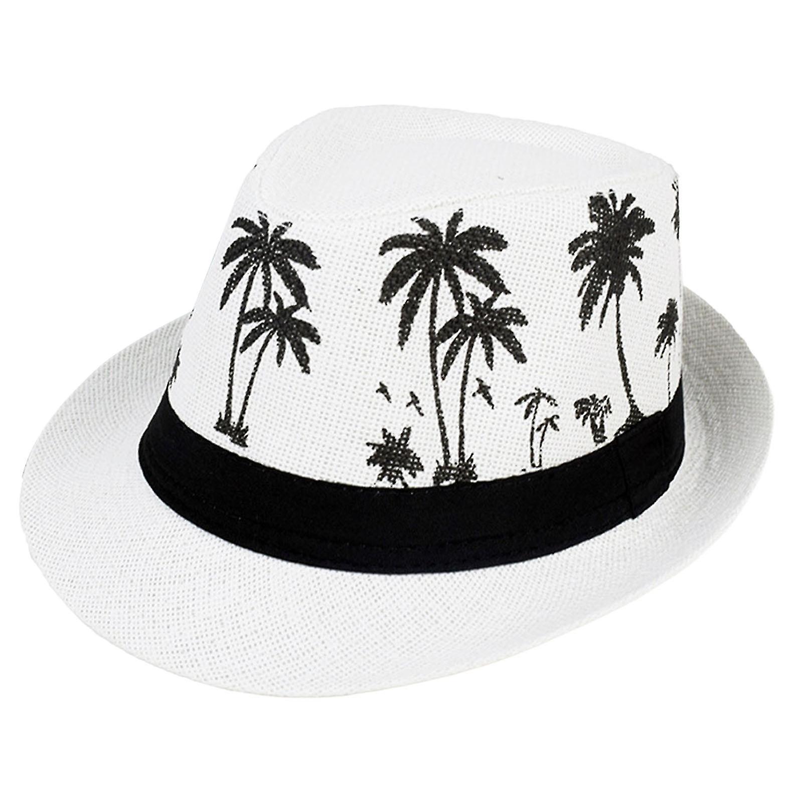 Men Beach Hat Breathable Short Brim Tree Print Contrast Color Flat Top Sun Protection Lightweight Outdoor Travel Jazz Hat Headwear