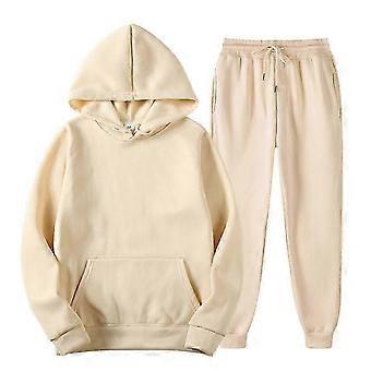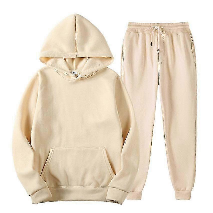 Men's Solid Color Hooded Pullover Sets Autumn Winter Fleece Hoodie Two Piece Suit Plus Size Men's Sportswear Pant Tracksuit