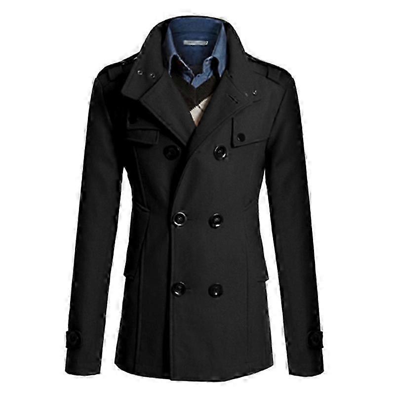 Men Double Breasted Trench Coat Winter Warm Formal Jacket Overcoat Outwear