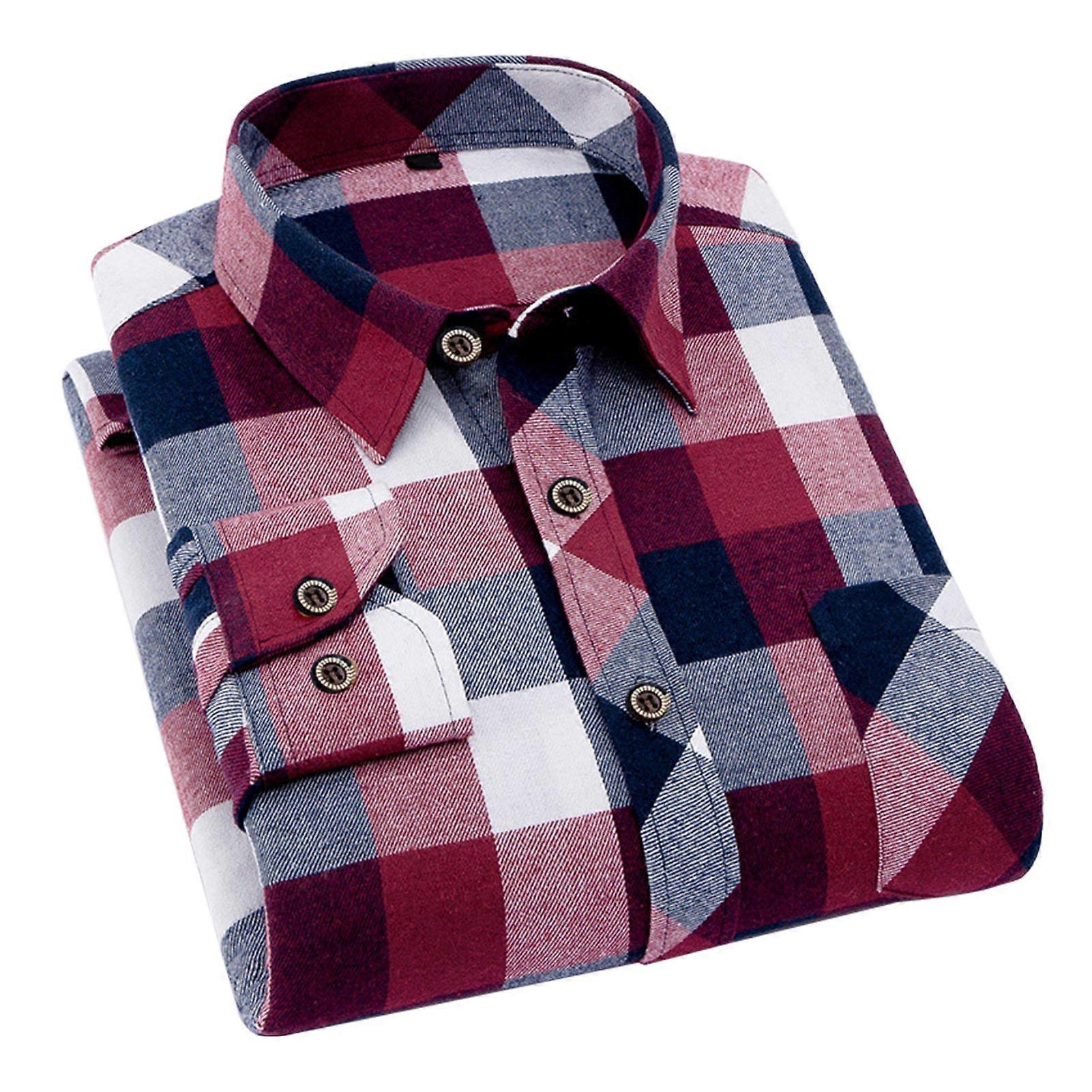 Men Plaid Shirt Turn Down Collar Long Sleeve Single Row Button Classic Top for Male Boys