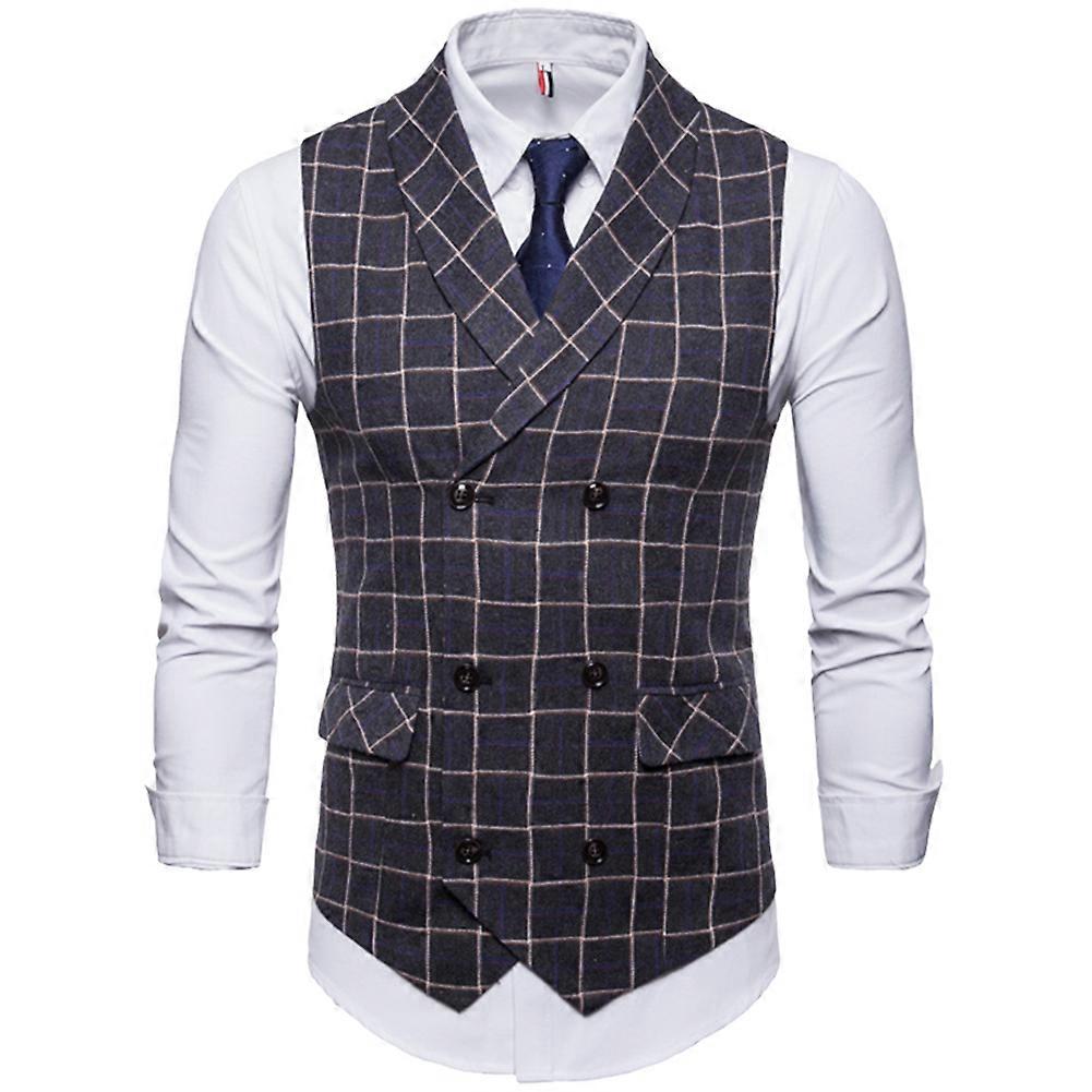 Men Plaid Pattern Single-breasted Sleeveless Formal Waistcoats Dress Suit Vest (Dark Gray 4XL)