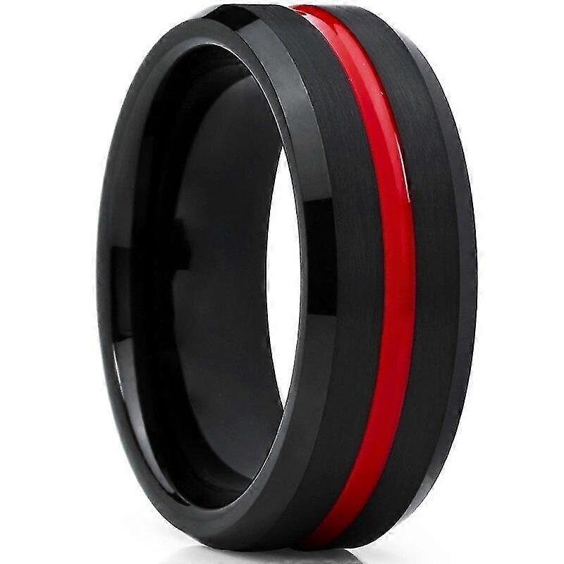 Men S Fashion Simple Personality Design Black Circle Red Line Titanium Steel Ring Jewelry Accessories Gift