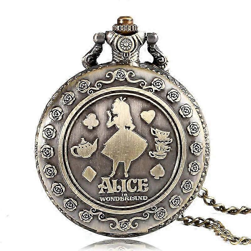 Retro Classic Bronze Full Hunter Dream Alice in Wonderland Rabbit Quartz Pocket Watch Chain Copper Girl Women Gift