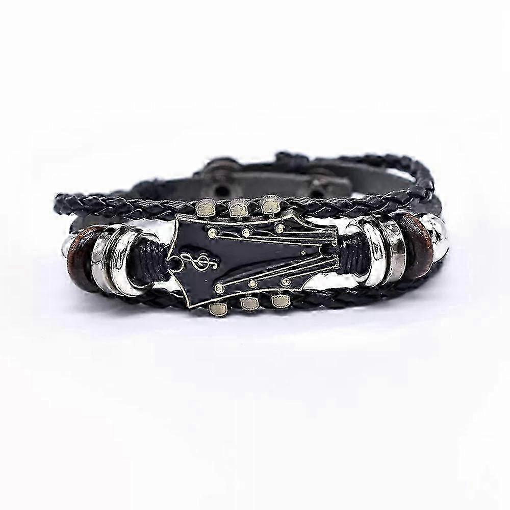 Retro Faux Leather Guitar Bracelet & Zinc Alloy Rock Music Jewelry - Stylish Leather Wristband for Musicians & Music Lovers