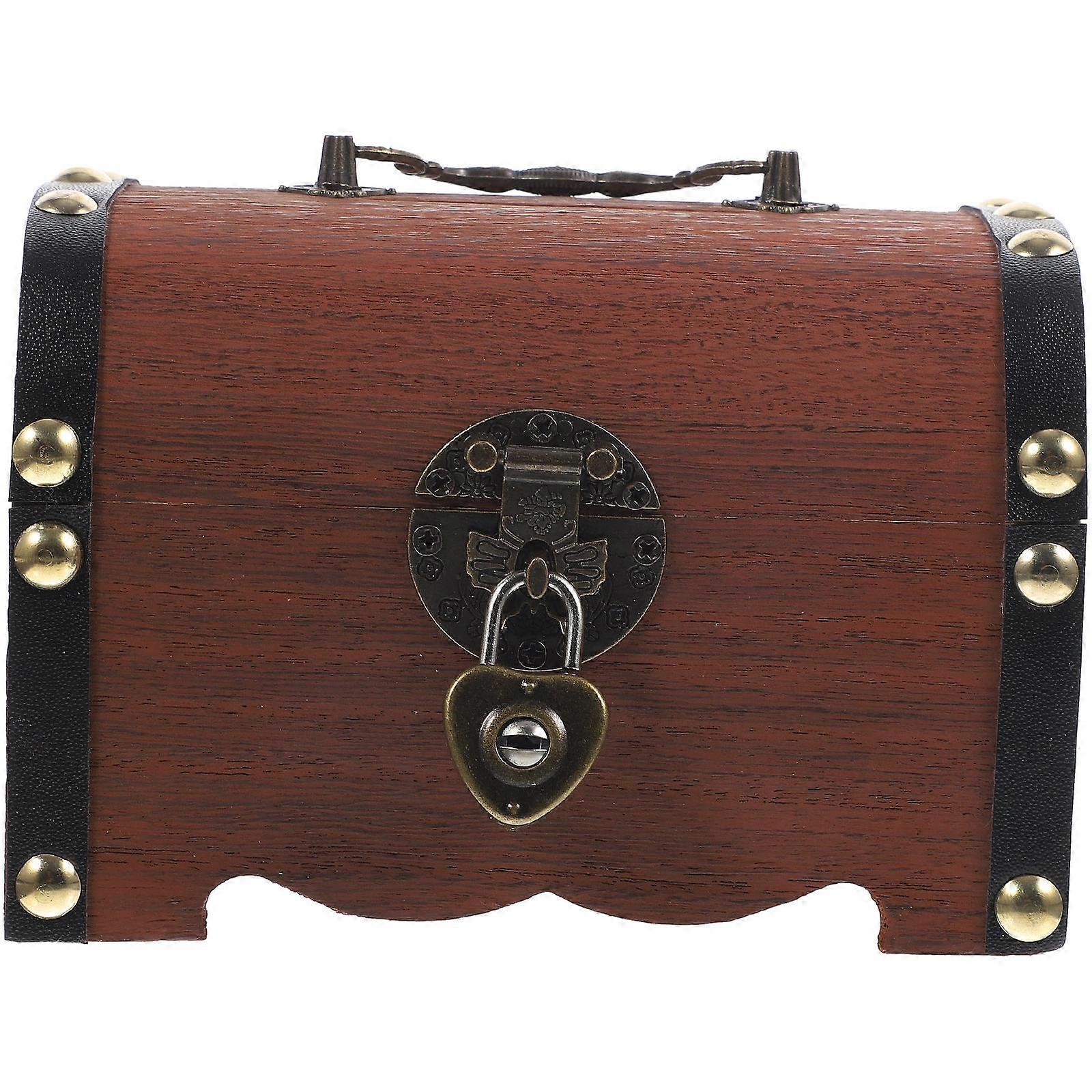 Retro Style Treasure Box Wooden Piggy Bank Lockable Item Storage Coffee 14.00X10.50X10.00cm 1Pcs