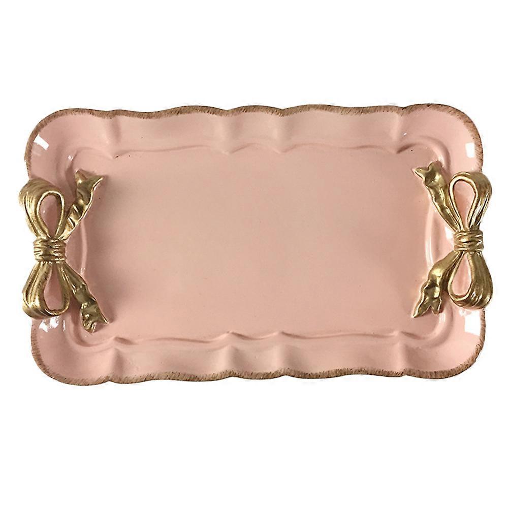 Retro Bowknot Small Decorative Jewelry Dish Holer Tray Plate for Dessert Cake Cafe Home Decor(Pink)