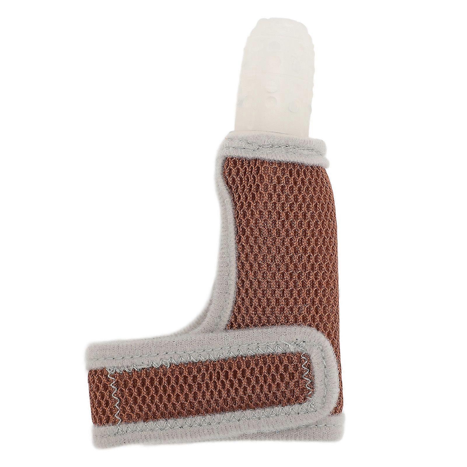 Infant Silicone Thumb Guard Finger Protection Stop Sucking Baby Thumb with Breathable Wrist Band for Baby Over 3 Months Old White