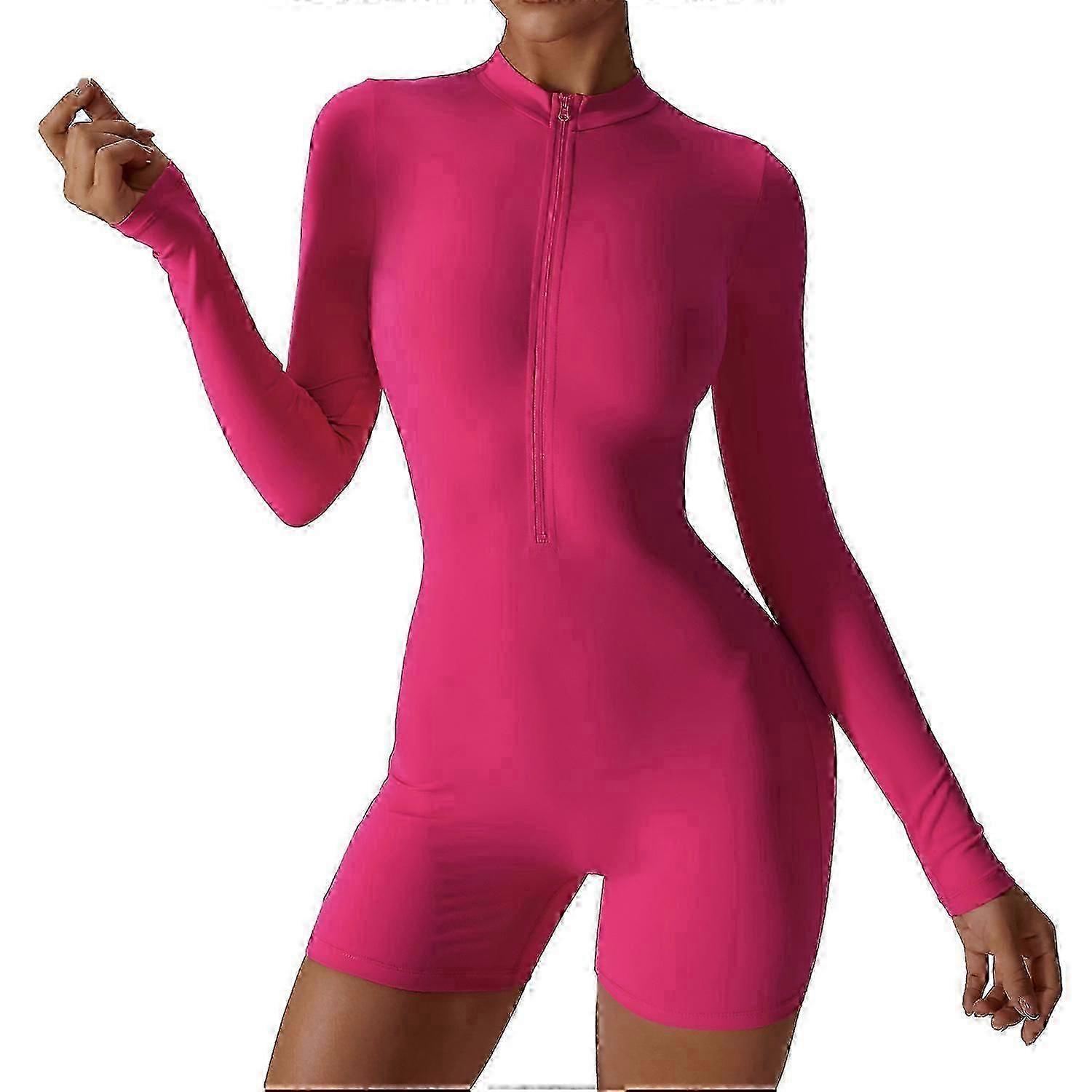 Zip Front Long Sleeve Jumpsuits for Women Yoga Jumpsuits Brushed Buttery Soft Workout Shorts
