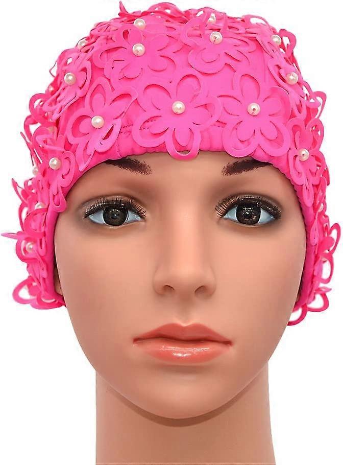 Hollow Flowers Pearls Sewn by Hand Women's Ladies Swimming Hat Swim Cap Bathing Cap