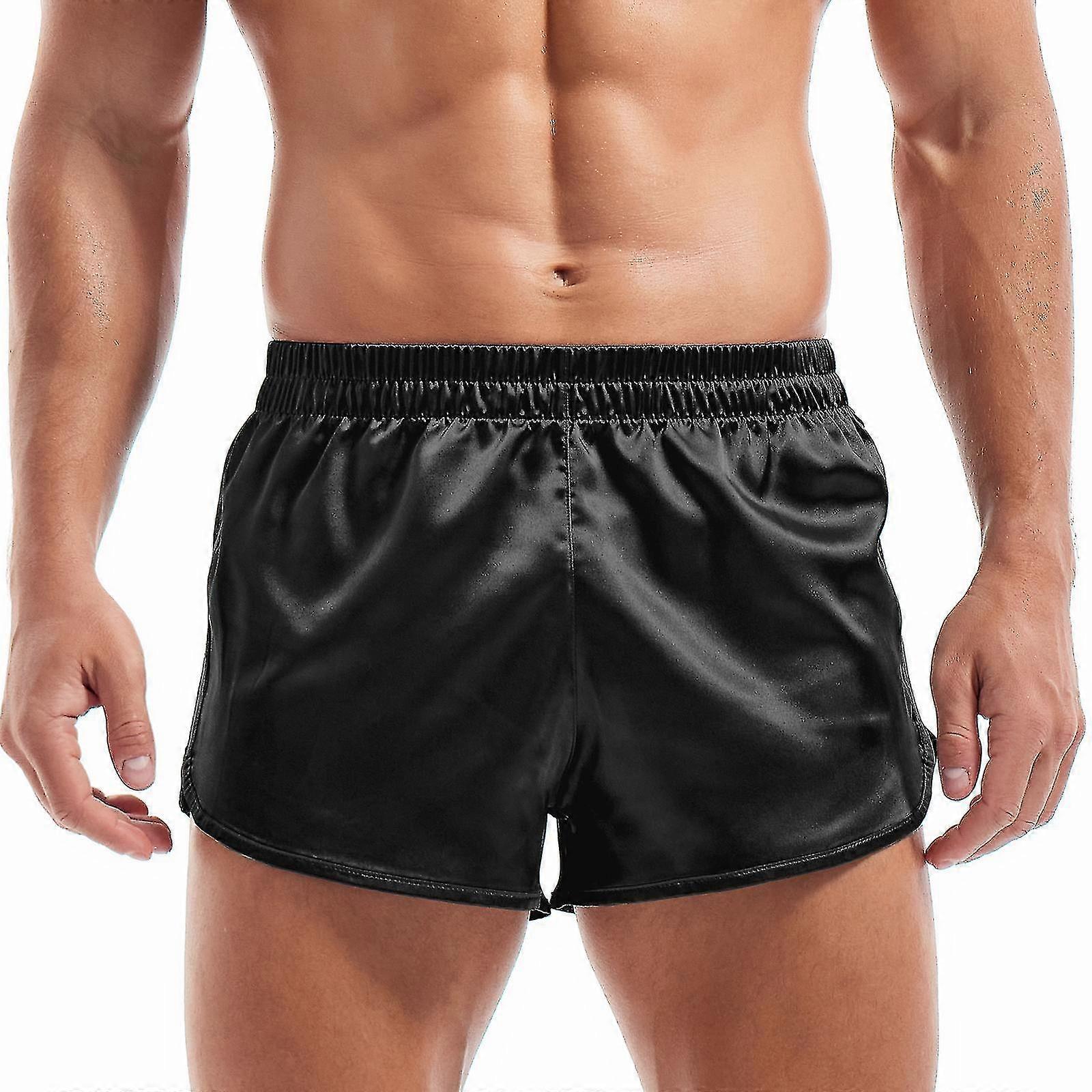 Satin Underwear Boxers Men's Sexy Boxer Briefs Smooth Silk Pajamas Shorts Loose Split Man Lounge Boxershorts Home Sleep Bottoms