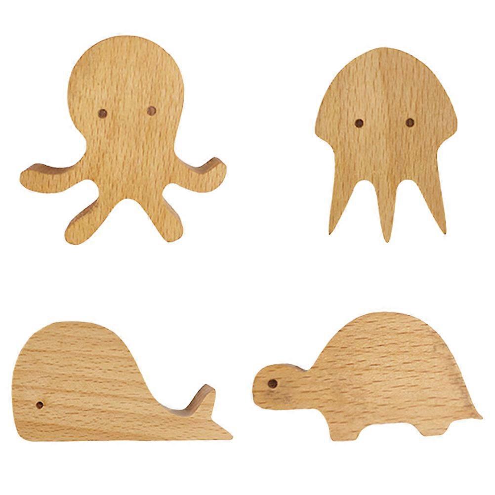 Modern Coat Hooks Coat Hooks Wall Mounted Wooden Polished Cartoon Marine Animal Design Study 6.5X6X3.5CM Organizer 4Pcs