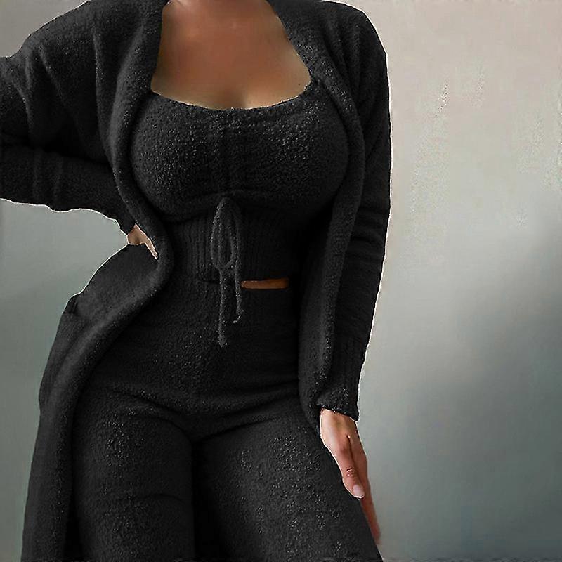 Ladies Casual Crop Tank Tops Lounge Sets Loungewear Long Sleeve Fuzzy 3 Piece Sweatsuit