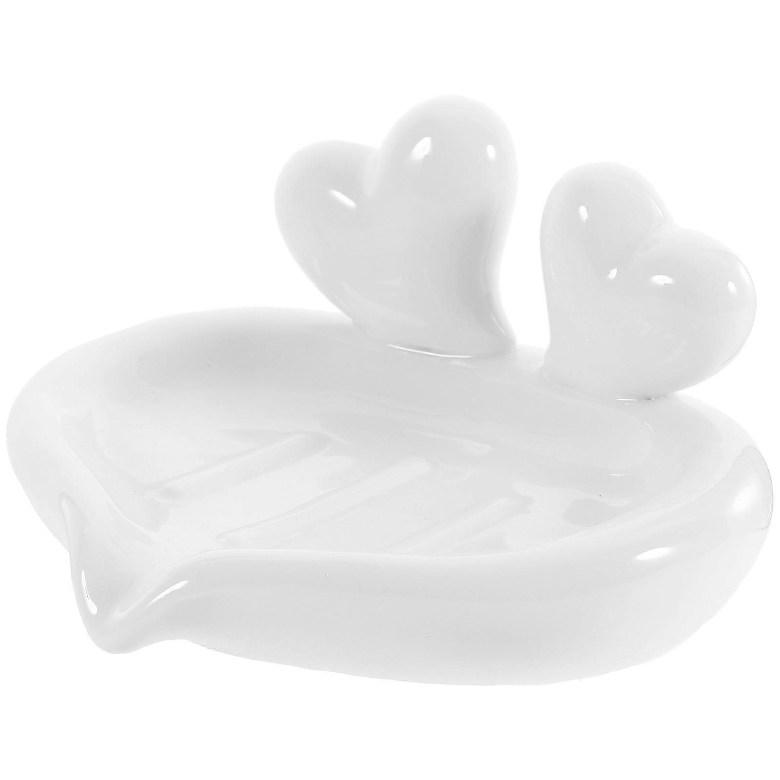 Ceramic Soap Dish Cartoon Heart Soap Shelf Creative Draining Dish Bathroom Countertop Soap Dish