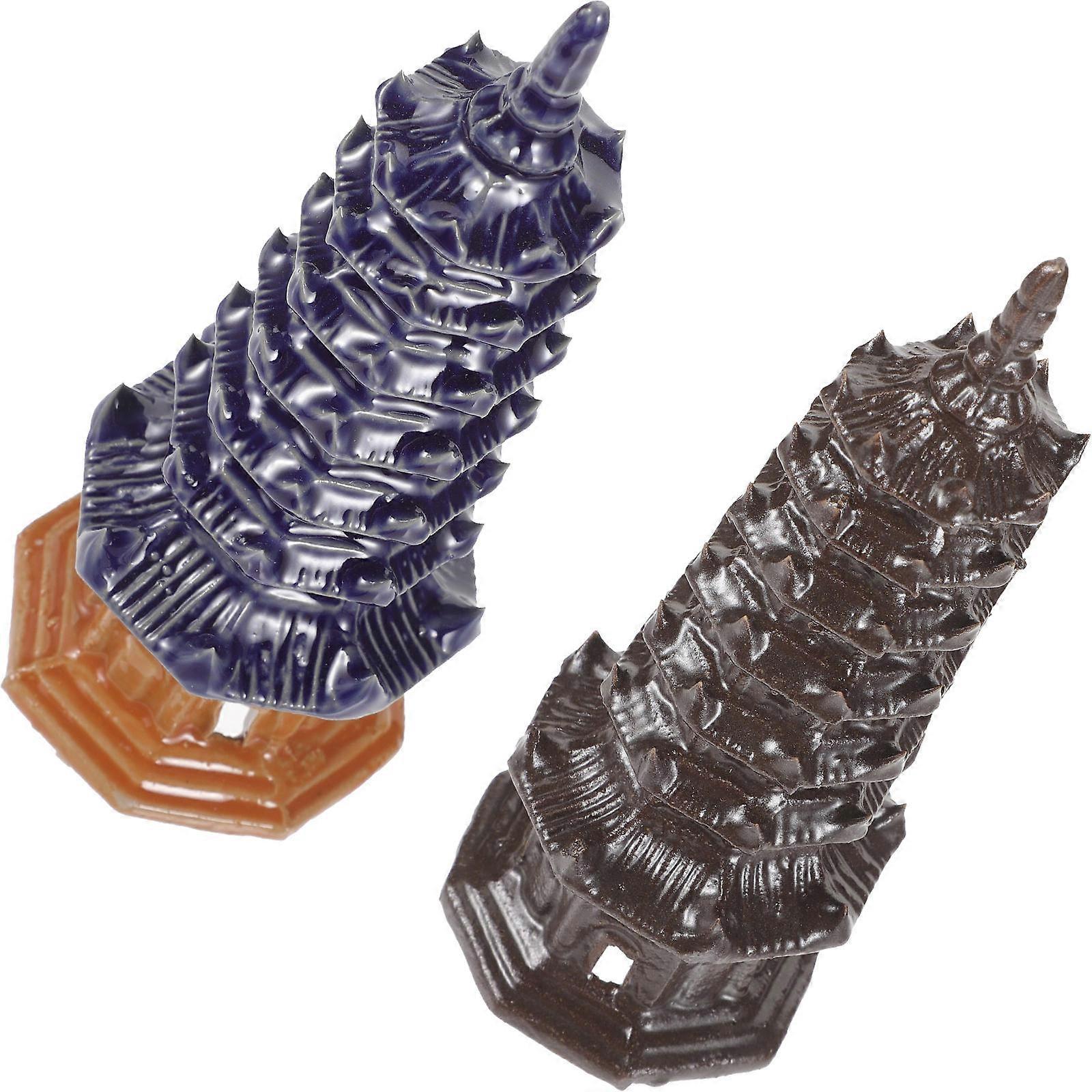 Ceramic Mini Decoration Miniature Tower Ceramics Fish Tank Landscape Aquarium Owners 5.11x2.16x2.16in 2Pcs