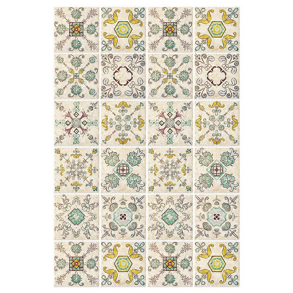 Tile Decals Vintage Style Tile Stickers Kitchen Bathroom Peel and Stick Waterproof Easy to Clean 24Pack