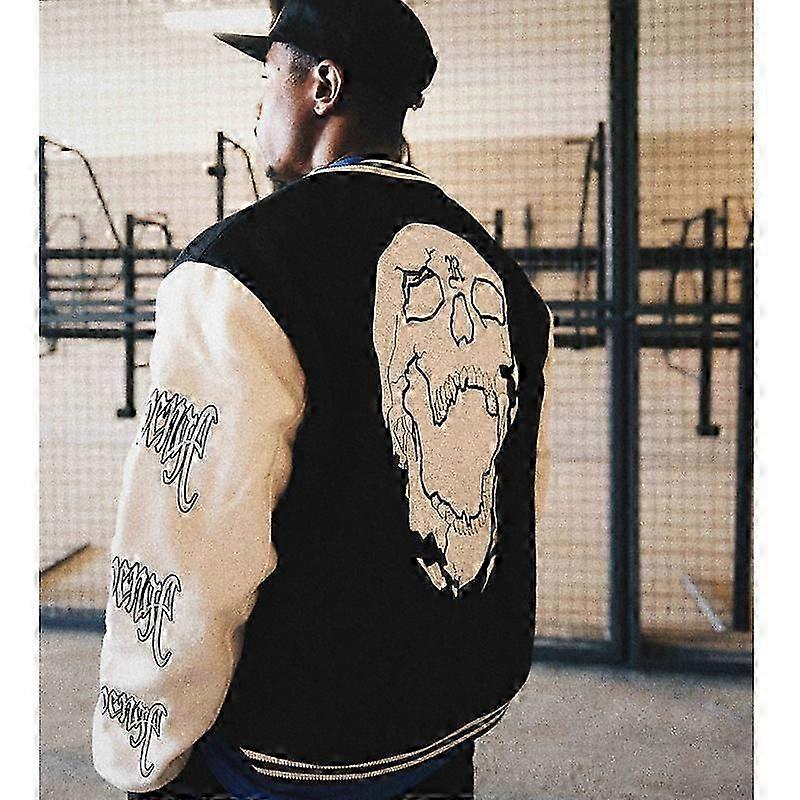 Street Vintage Clothing Skull Embroidered Baseball Jacket Men's American Patchwork Letter Embroidered Loose Jacket Men's Fashion