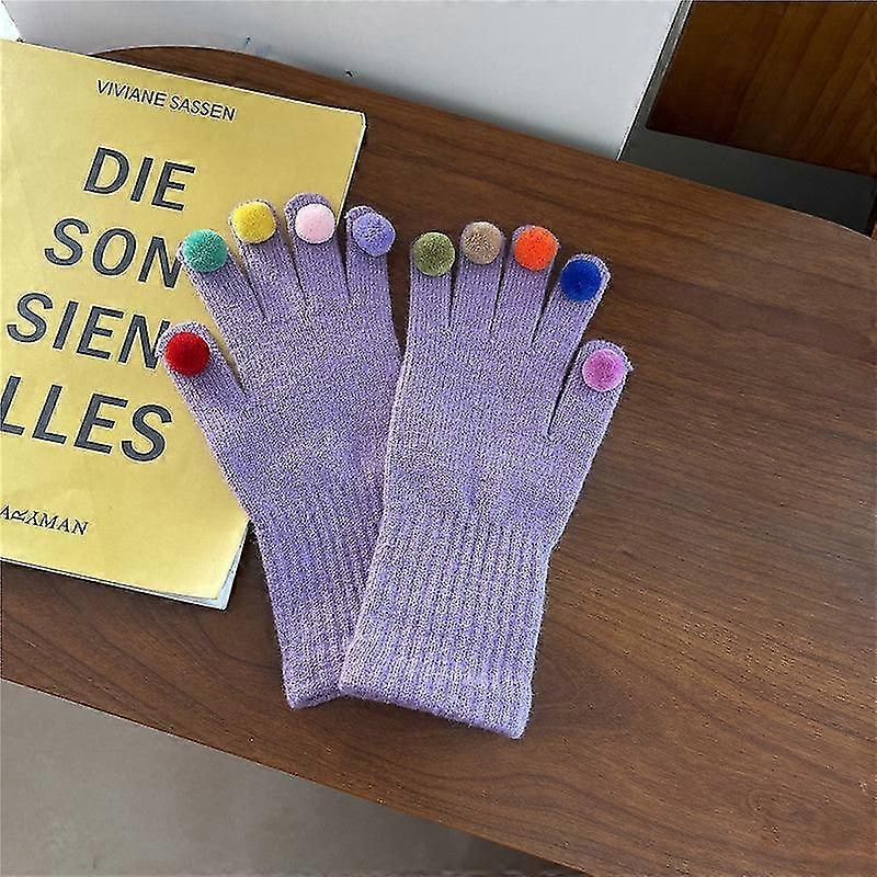 Winter Cute Girl Five Finger Cycling Thickened Warm Can Be Touch Screen Knitted Gloves