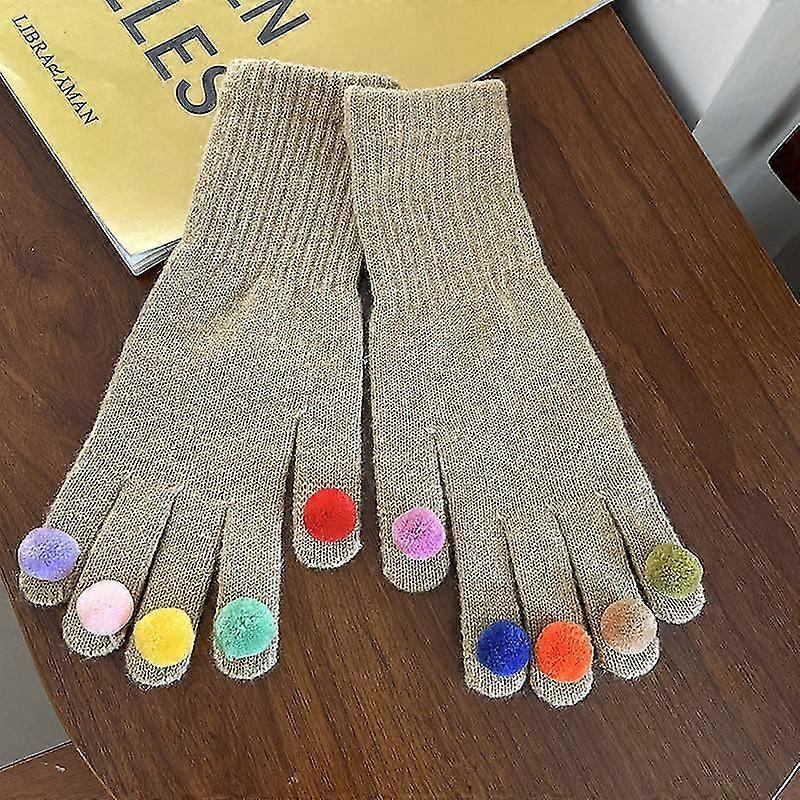 Winter Cute Girl Five Finger Cycling Thickened Warm Can Be Touch Screen Knitted Gloves