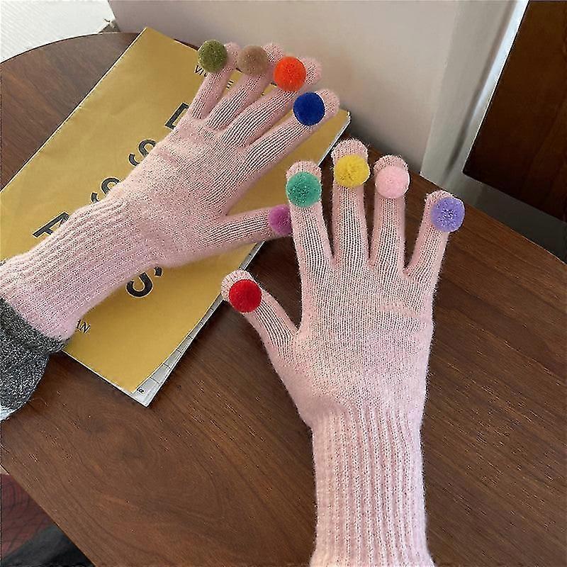 Winter Cute Girl Five Finger Cycling Thickened Warm Can Be Touch Screen Knitted Gloves