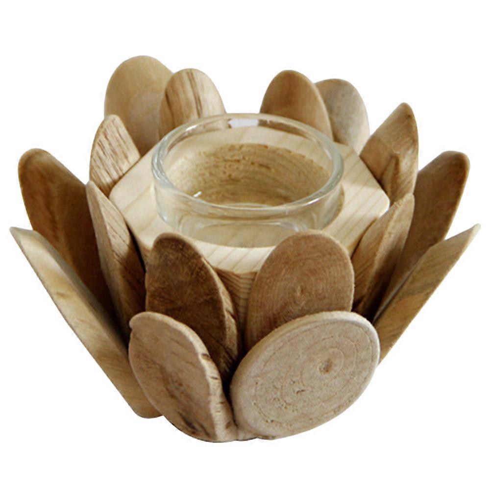 Candles Holder Flower Candlestick Holders Wooden Petals Style Decorative Centerpiece For Home Decor Christmas Beige 12.5X12.5CM 1Pcs