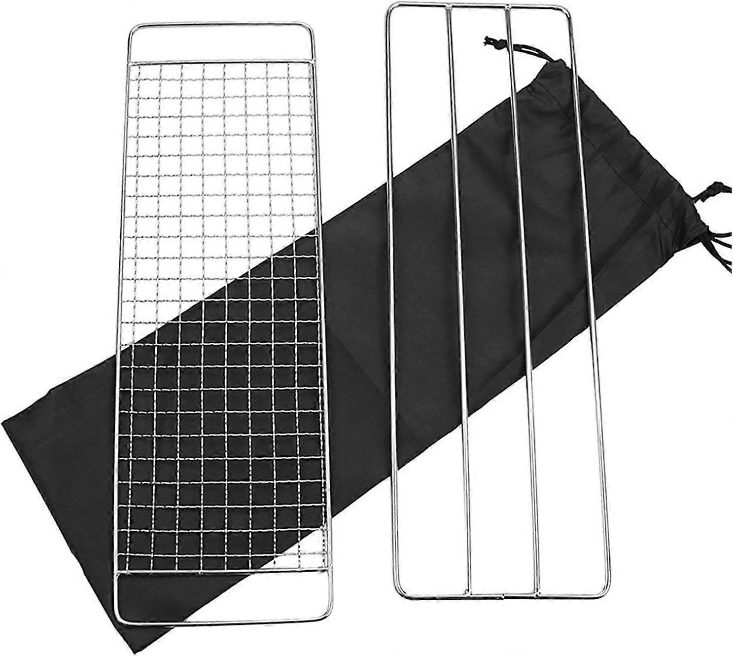 Barbecue Grill Pot Rack BBQ Net Mesh Rack For Outdoor Camping Hiking Fishing Camping Equipment (black, silver)2pcs