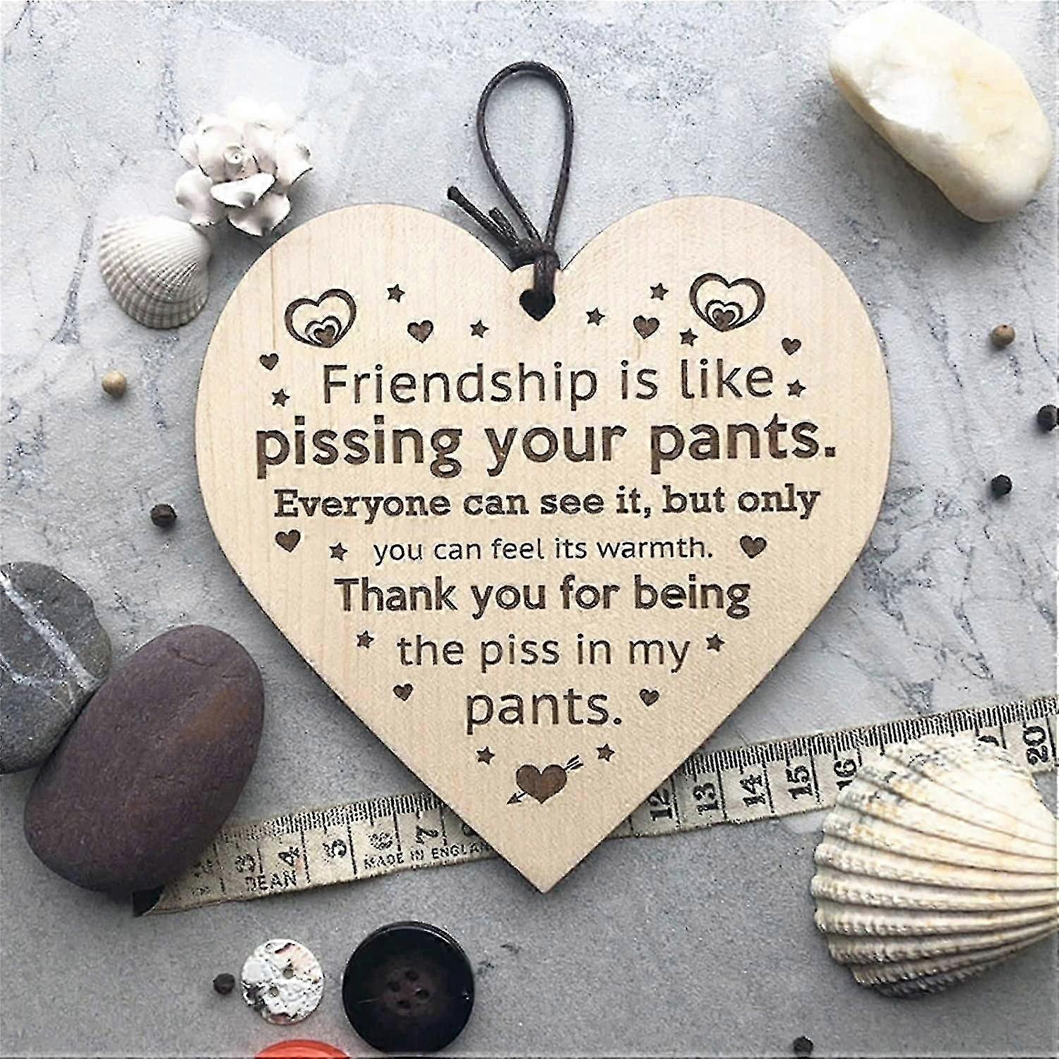 Friendship Pissing Pants Funny Wooden Plaque, Wood Heart Shaped Plaque Friendship Ornament Wall Art Decor