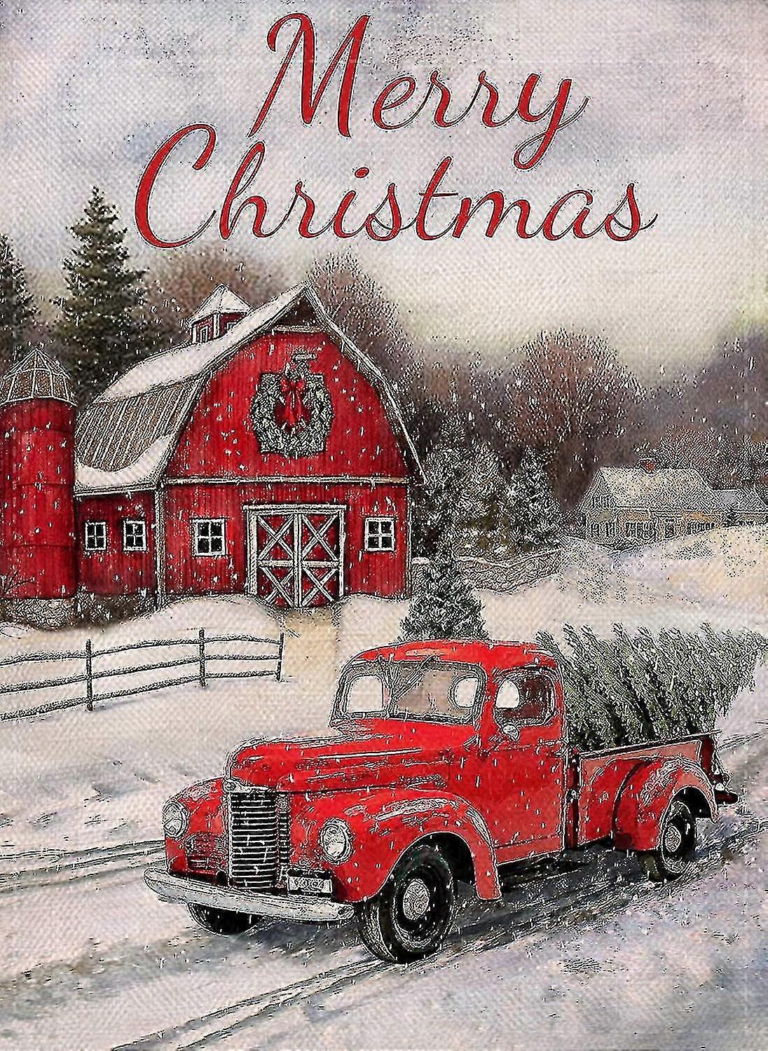 Home Decorative Merry Christmas Garden Flag Red Truck Double Sided, House Yard Flag Xmas Pickup, Outside Holiday Yard Decorations