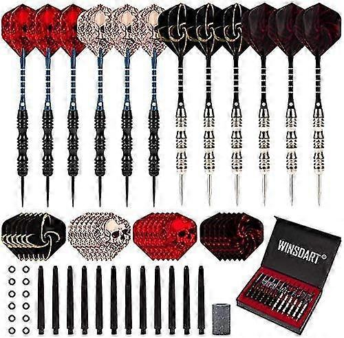 Steel Tip Darts Set 12 Pack 22 Grams With Nonslip Iron Barrel Aluminum Dart Shafts 2 Style Flights And Darts Sharpener, Gift Box