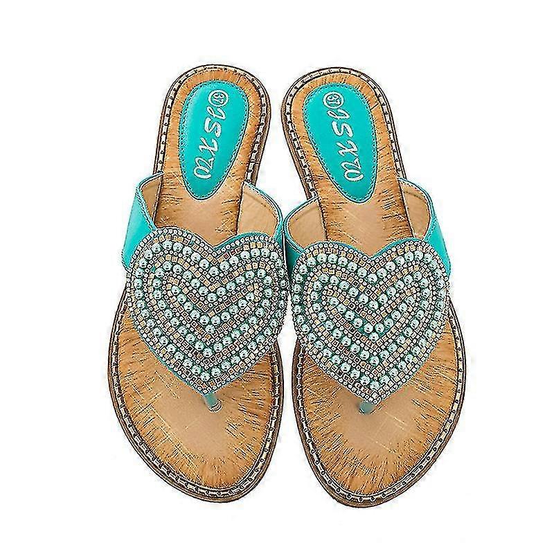 Sandals For Women Flat, Love Rhinestone Pearl Pinch Clip Toe Flip Flops Boho Casual Flat Slippers Beach Shoes
