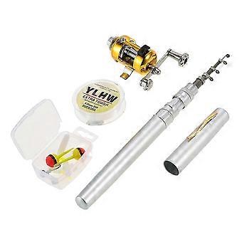 الصيد رود بكرة كومبو مجموعة صغيرة تلسكوبية المحمولة جيب القلم الصيد رود القطب وبكرة الألومنيوم آل
