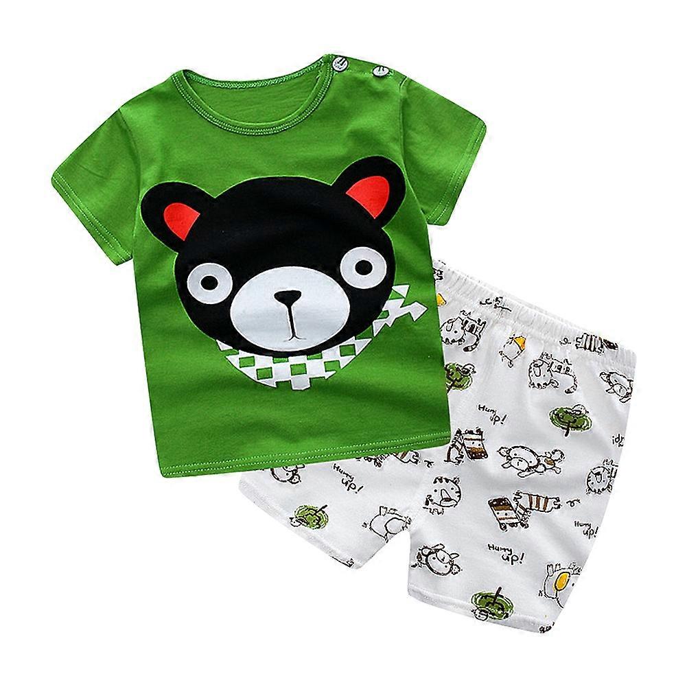 Summer Infant Baby Suit Short Sleeve Set T-Shirt + Shorts Green Animal (90)