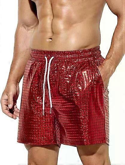 Summer Shiny Leather Trunks Men's Casual Loose Homewear Pockets Sleeping Lounge Pajama Beach Board Shorts Youth Sports Aro Pants
