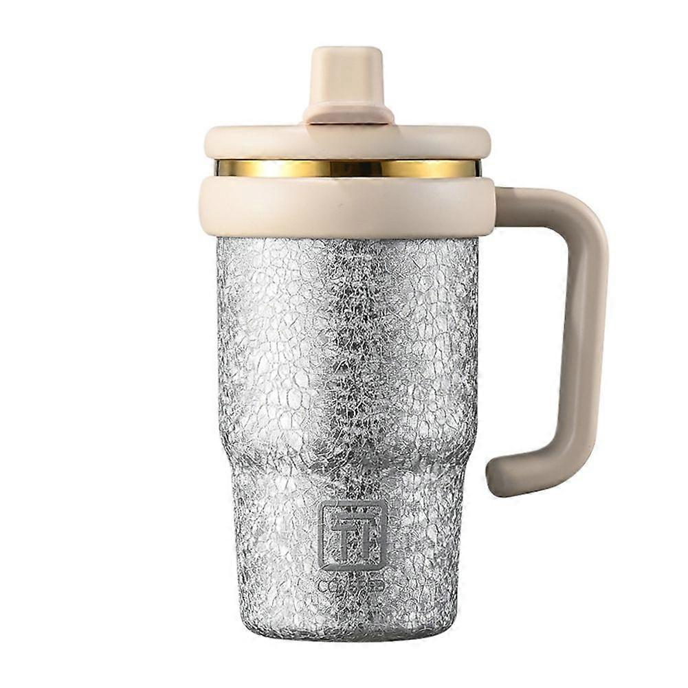 Summer Large Capacity Ice Flower Titanium Cup Double Drinking Water Cup Portable Ice Cup White