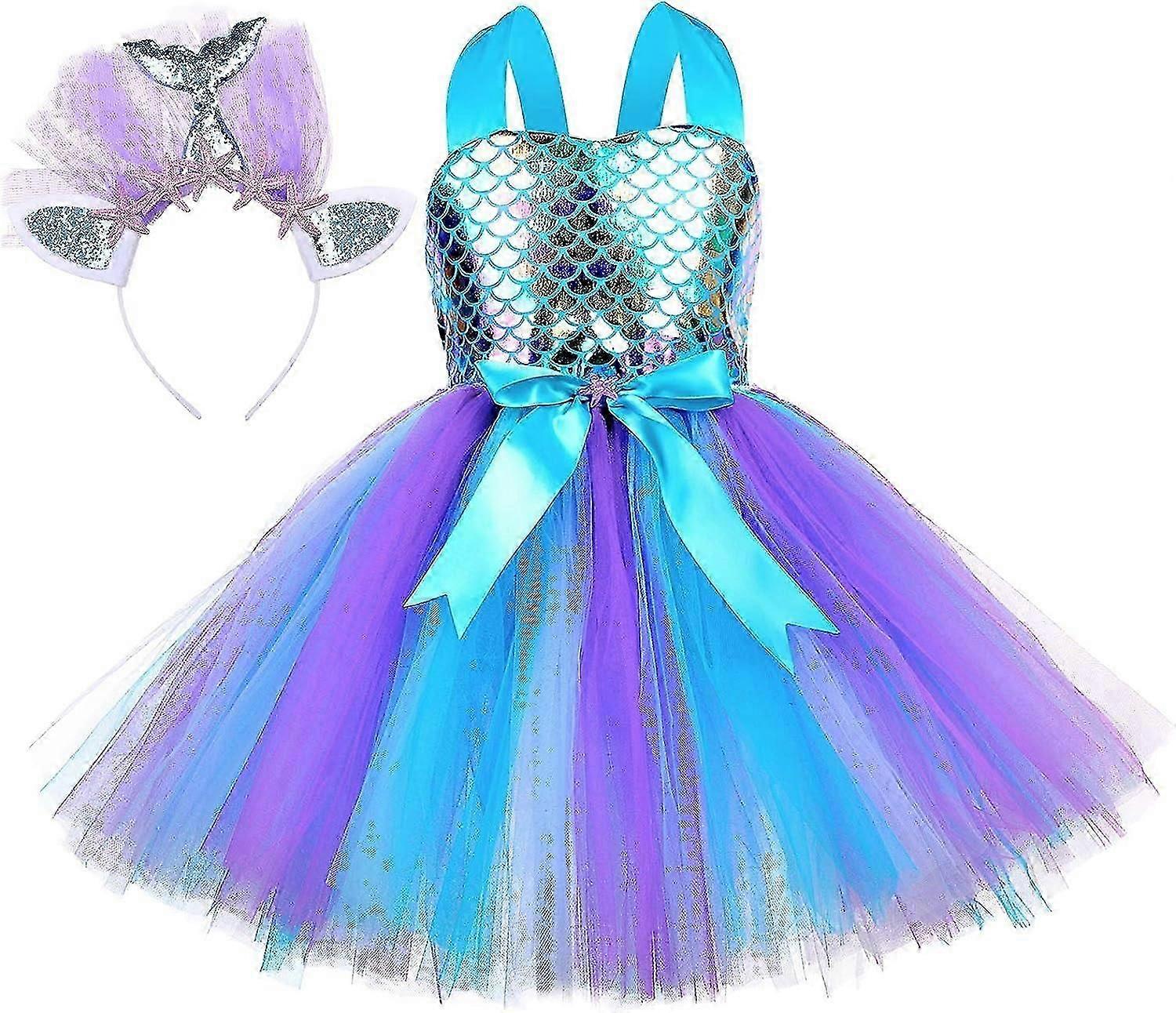 Summer 4 Colors Mermaid Dress for Girls with Headband Birthday Party Gifts Dress Up Clothes