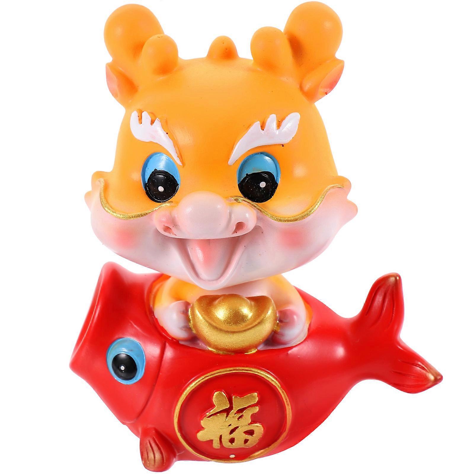 Chinese Resin Dragon Decoration Head Shaking Ornament Mini Dragon Tabletop Dashboard for Home Office Garden Decor 1Set
