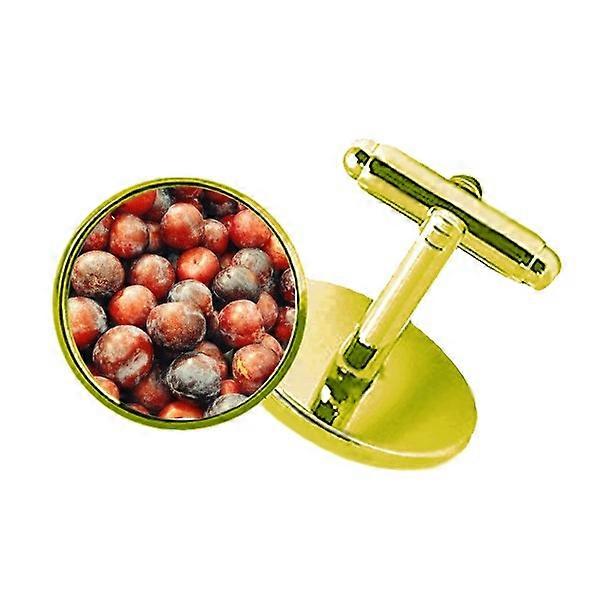 Fresh Temperate Fruit Plum Picture Studded Business Metal Cufflinks Golden